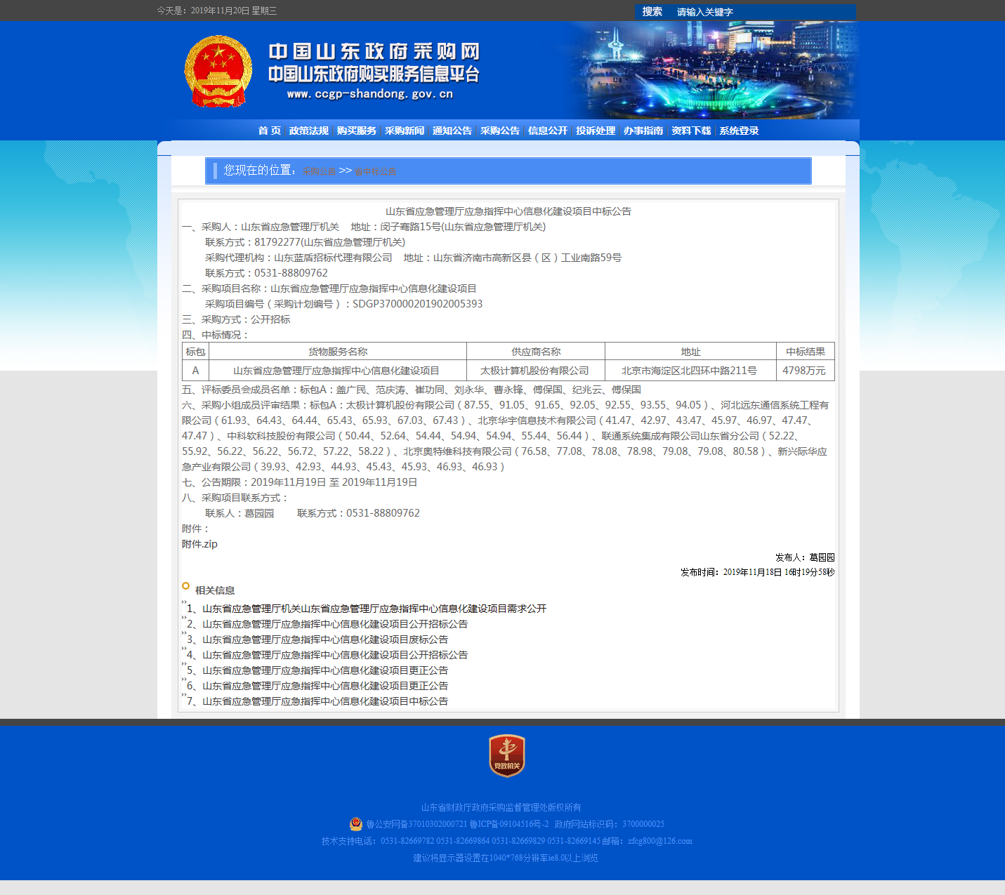 山东省应急管理厅应急指挥中心信息化建设项目中标公告